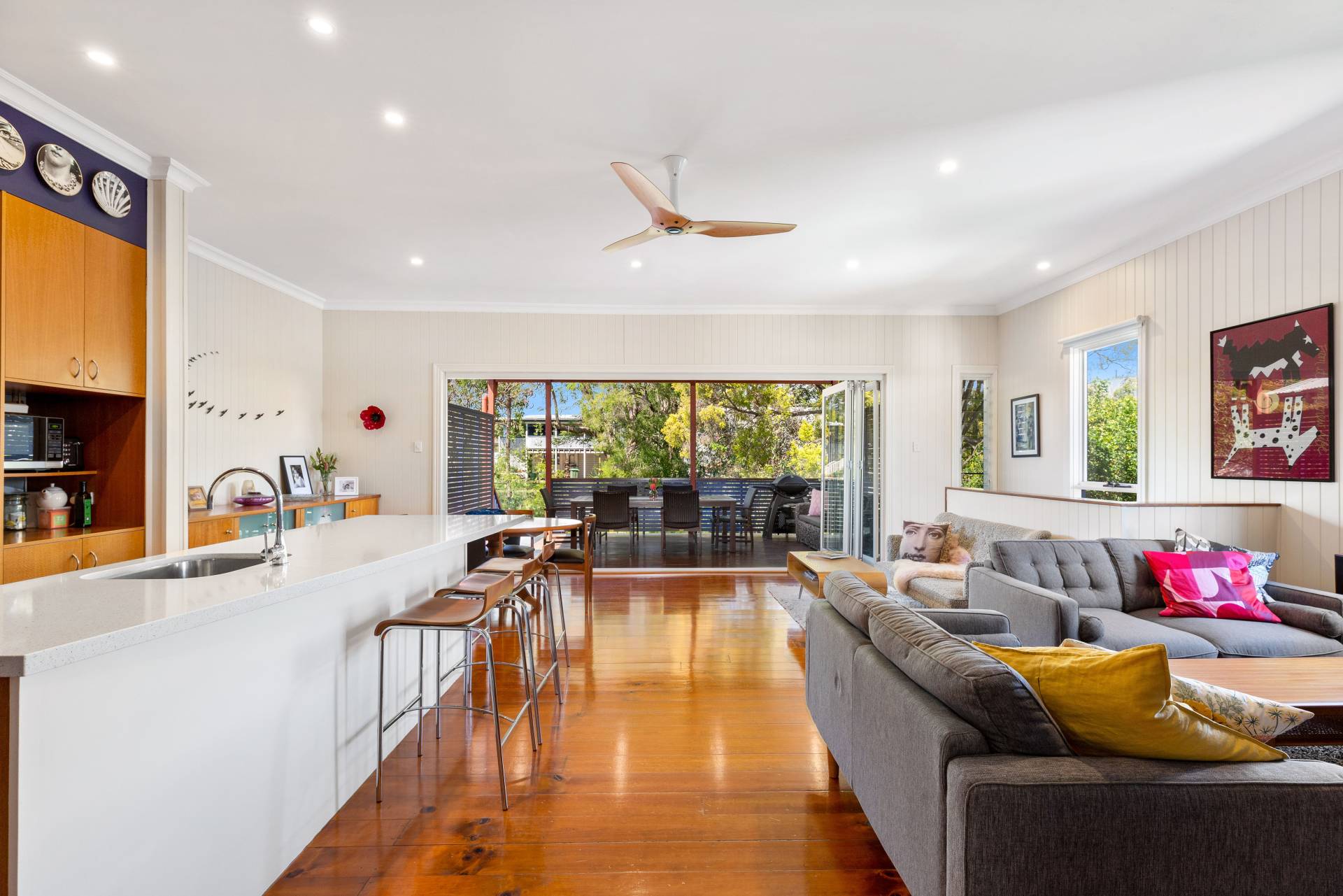 • Stunning open plan living and dining space that flows seamlessly via bifold doors to the expansive, east facing covered rear deck, great for year round entertaining! The open plan living area features quality built in timber cabinetry, polished timber floors, high ceilings with downlights. This living area offers flexibility in how you utilize the space