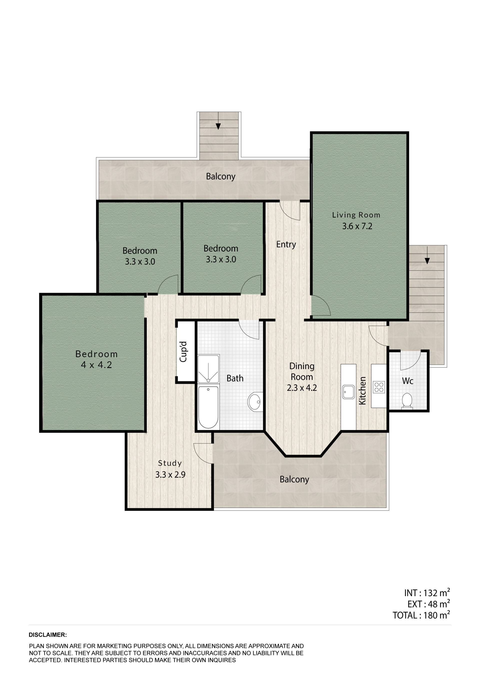 • 3 good size bedrooms