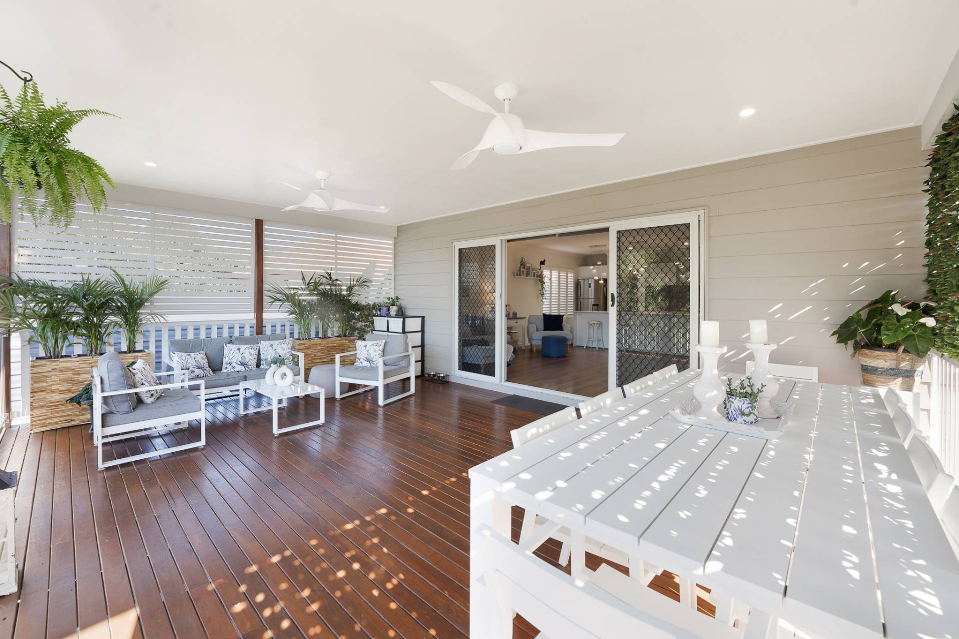 • The open plan living area flows seamlessly to the full width, covered east facing deck