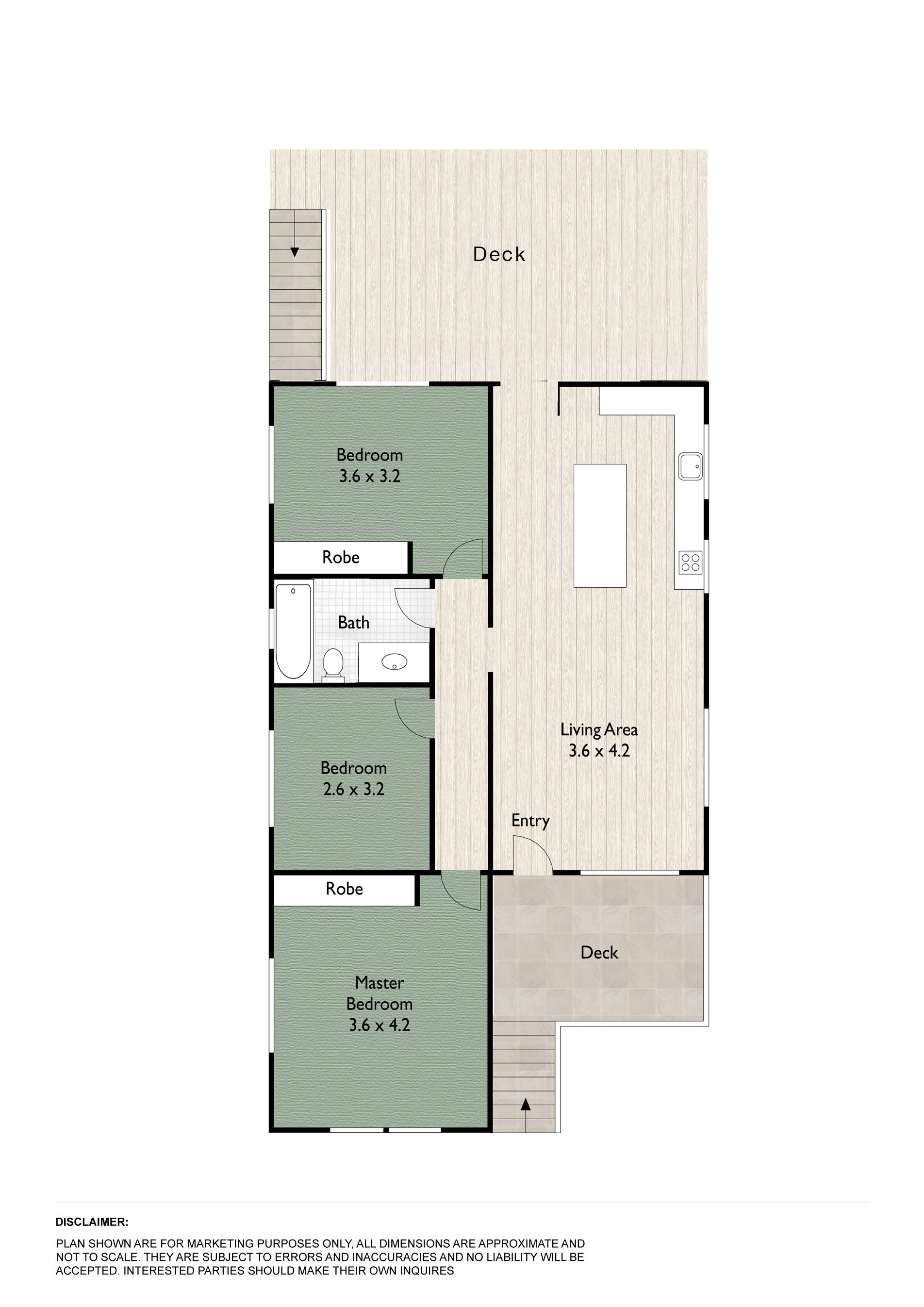 • Open plan air conditioned living area opens to the covered full width rear deck which overlooks the easy care landscaped back yard