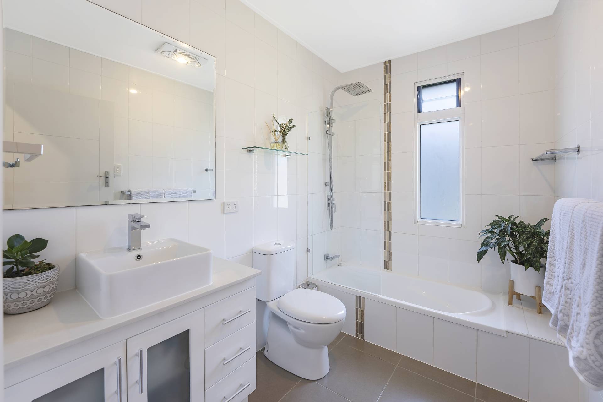 • Fresh, modern bathroom with good size vanity, shower over bath combination plus floor to ceiling tiles