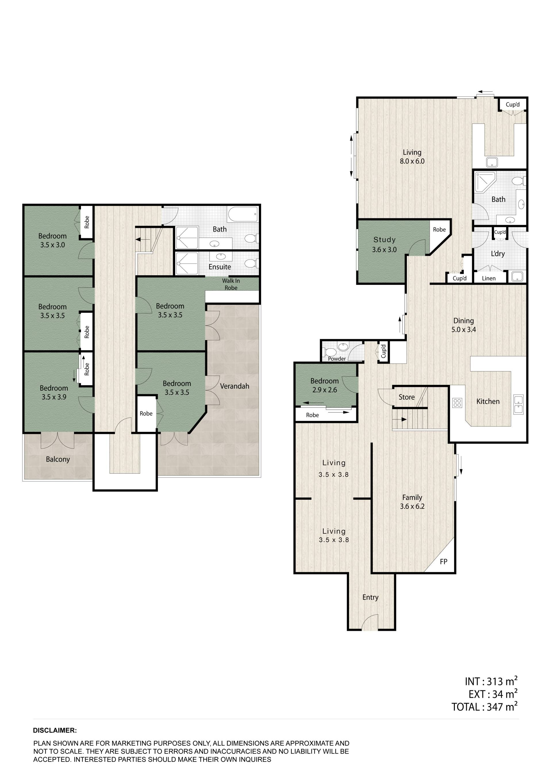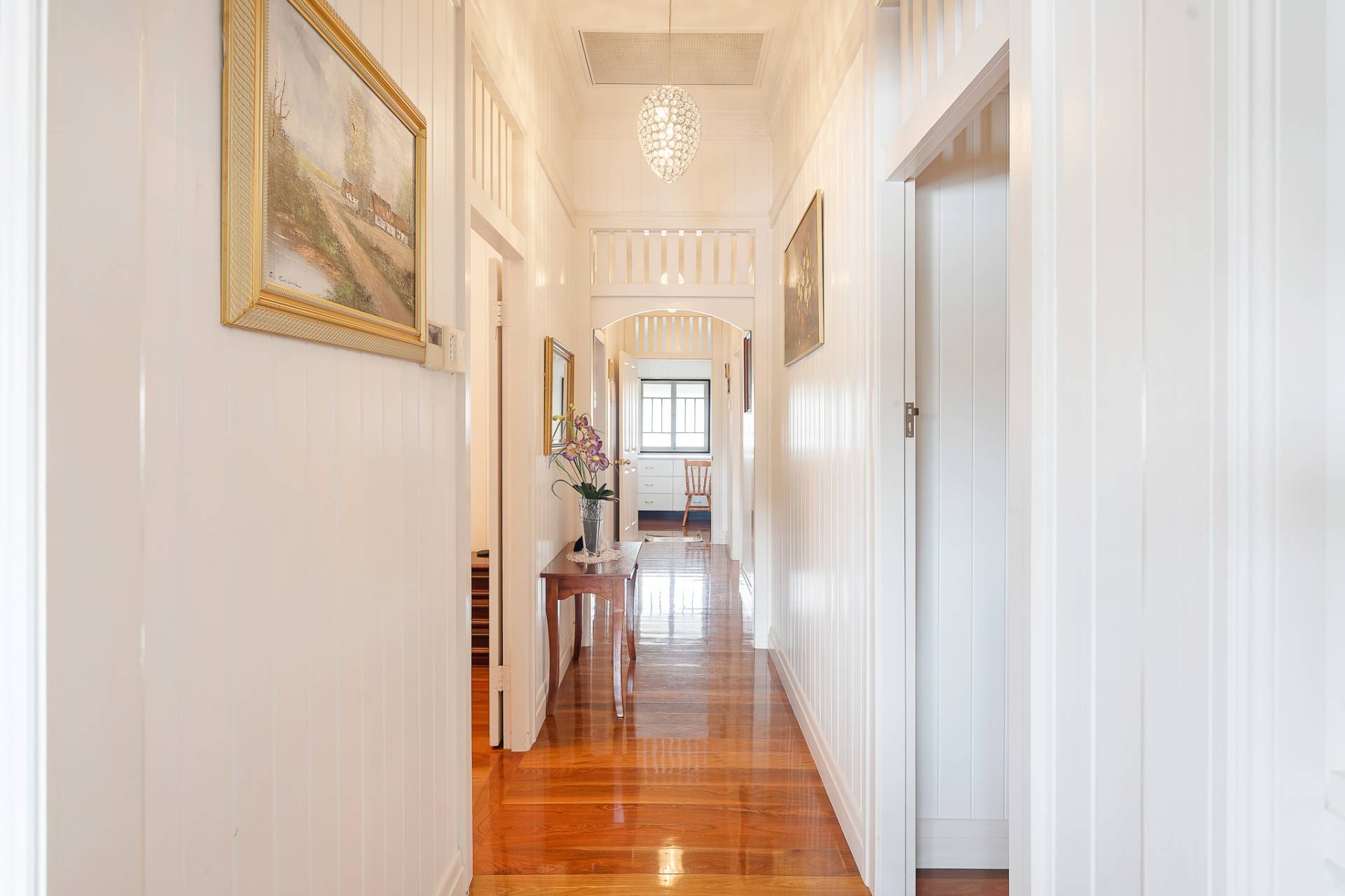 • Upstairs there are 5 Bedrooms located off the central hallway all with built in wardrobes (main with walk in robe and convenient ensuite) which are temperature controlled via ducted air conditioning to ensure sleep comfort no matter what the weather. Three of the bedrooms open to the cool, covered verandas