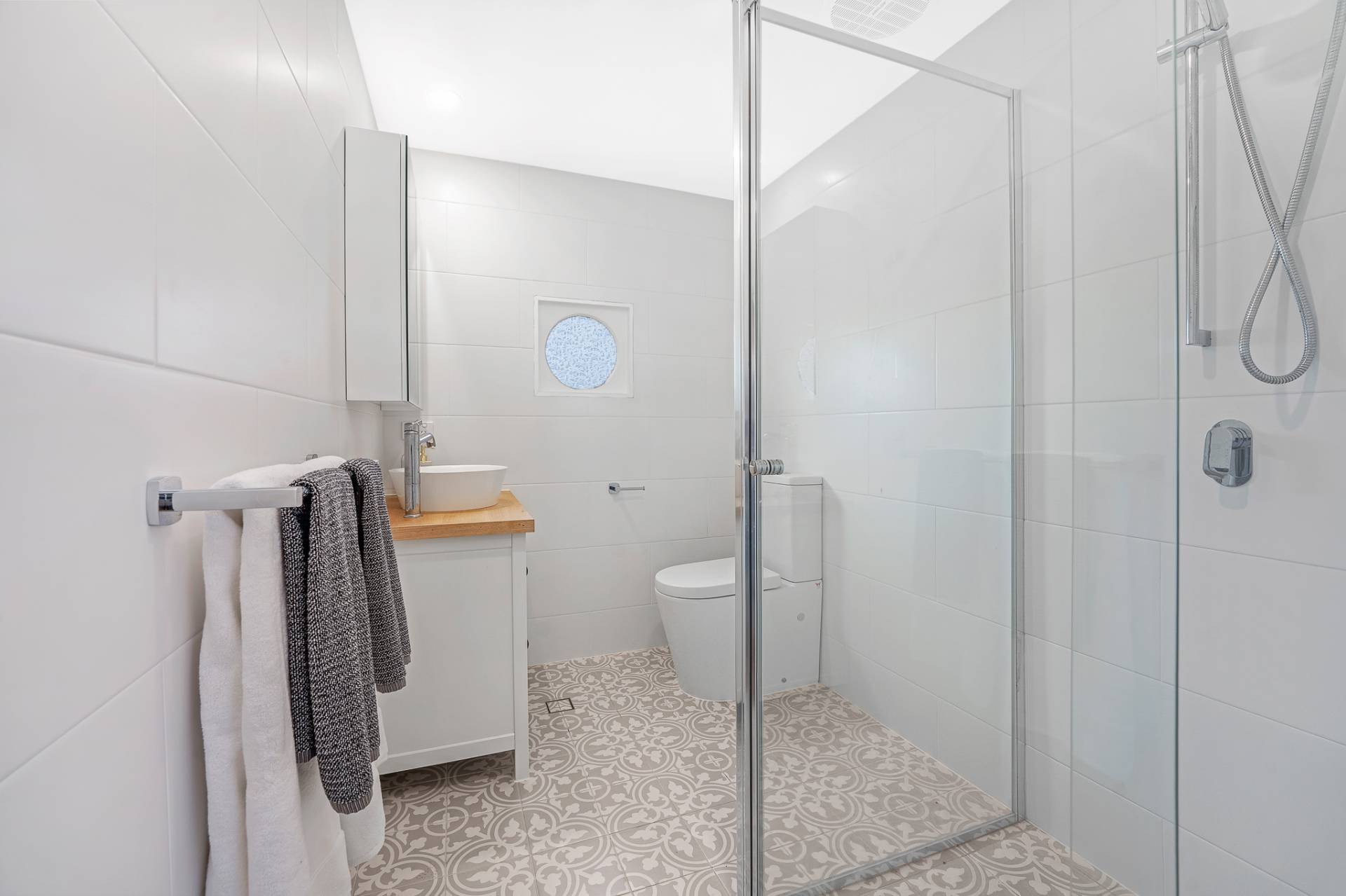 Gleaming NEW family bathroom with shower over bath combination