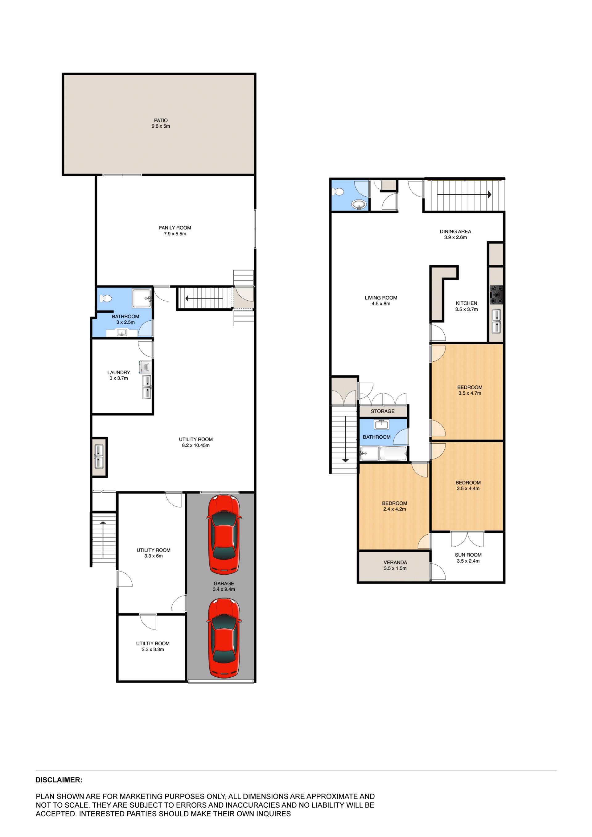 • 3 large bedrooms plus sun room
