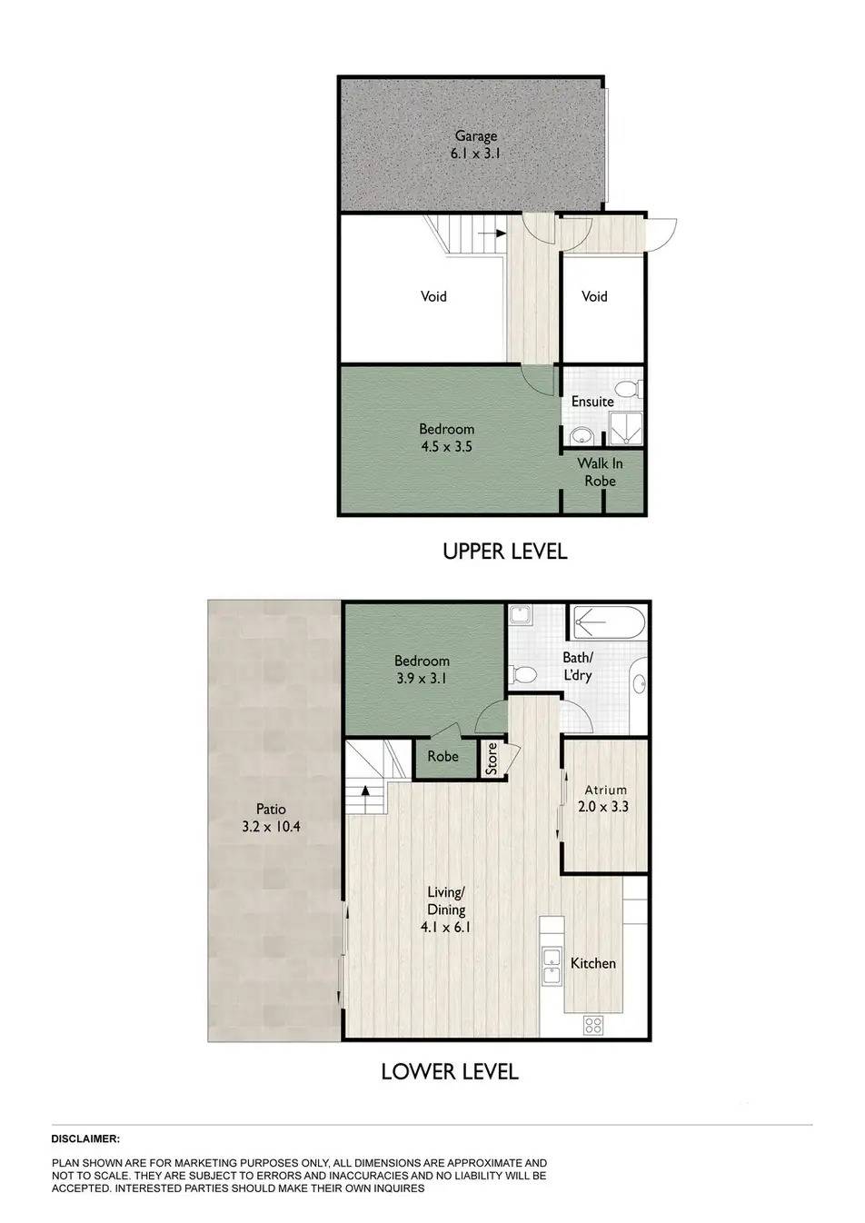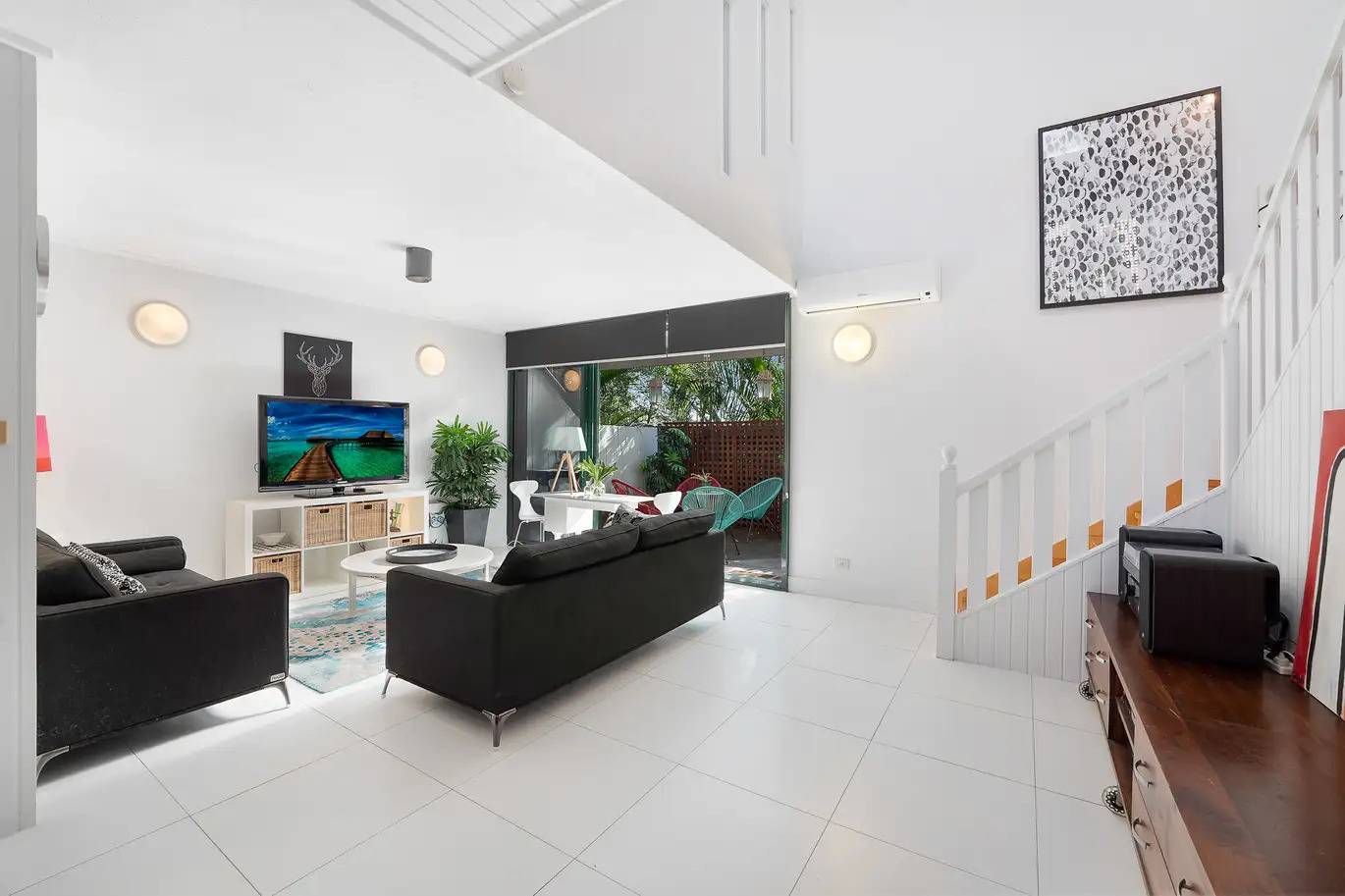 • Two huge bedrooms, one on each level. The Main Bedroom is air conditioned to ensure sleep comfort no matter what the temperature. This bedroom also features a large walk in robe plus a classic, black and white ensuite for your convenience