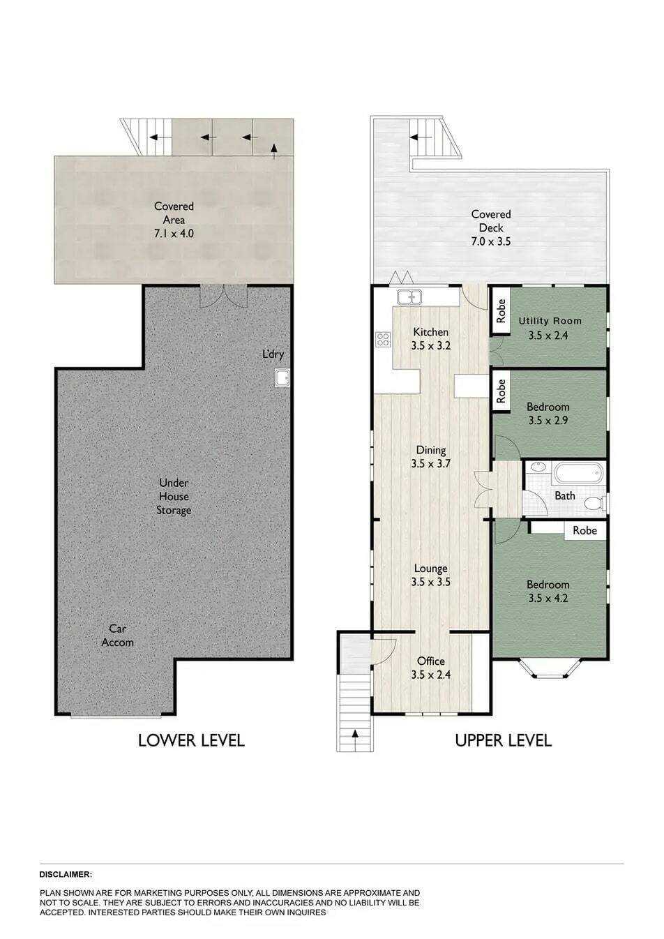 • Two air conditioned bedrooms both with built in wardrobes, plus a third upstairs utility room currently used as a bedroom (ceiling height just shy of 2.4m)