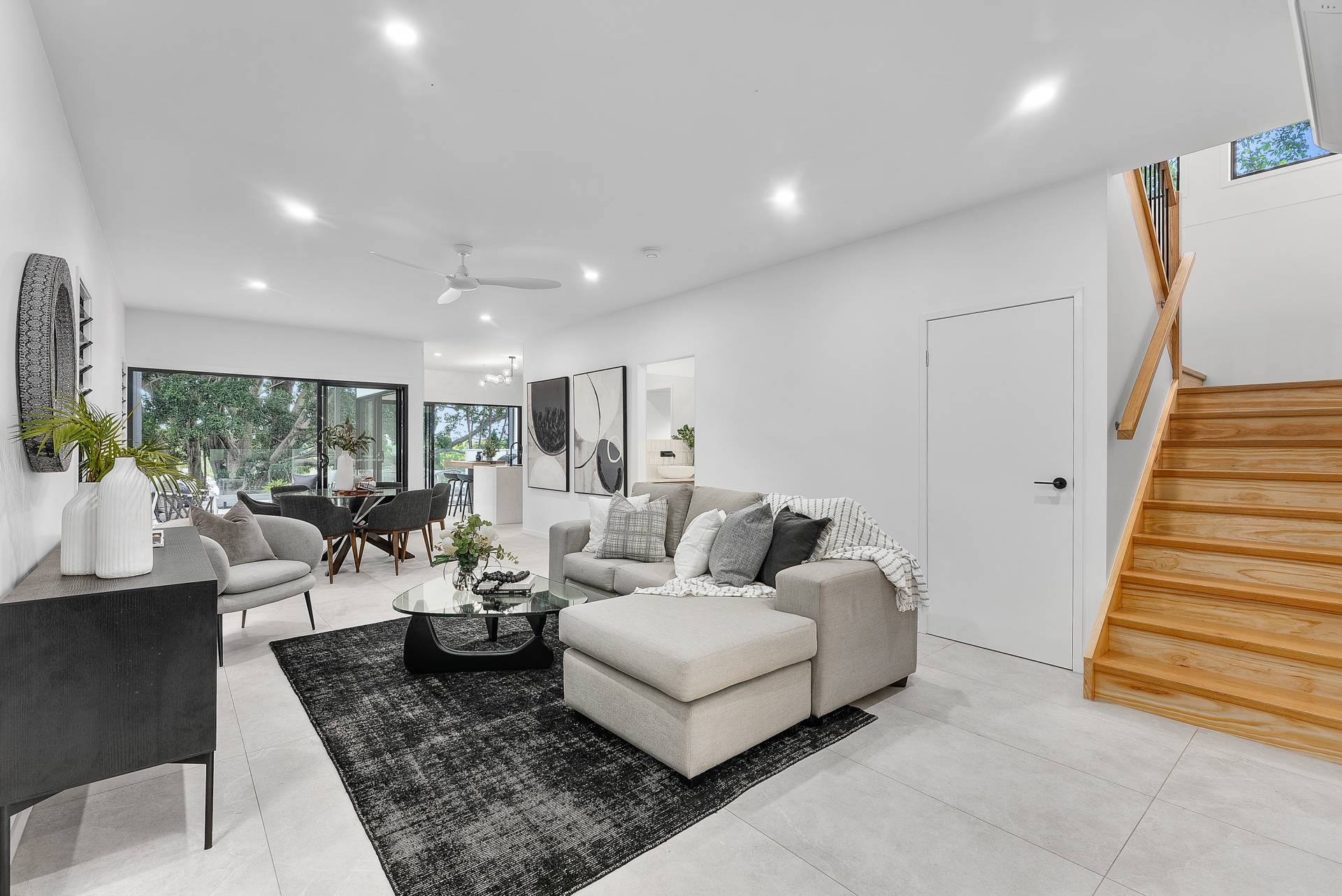 • Open plan living and dining area that flows seamlessly to the al fresco entertaining and poolside area. Beautiful large format porcelain tiles feature throughout this space