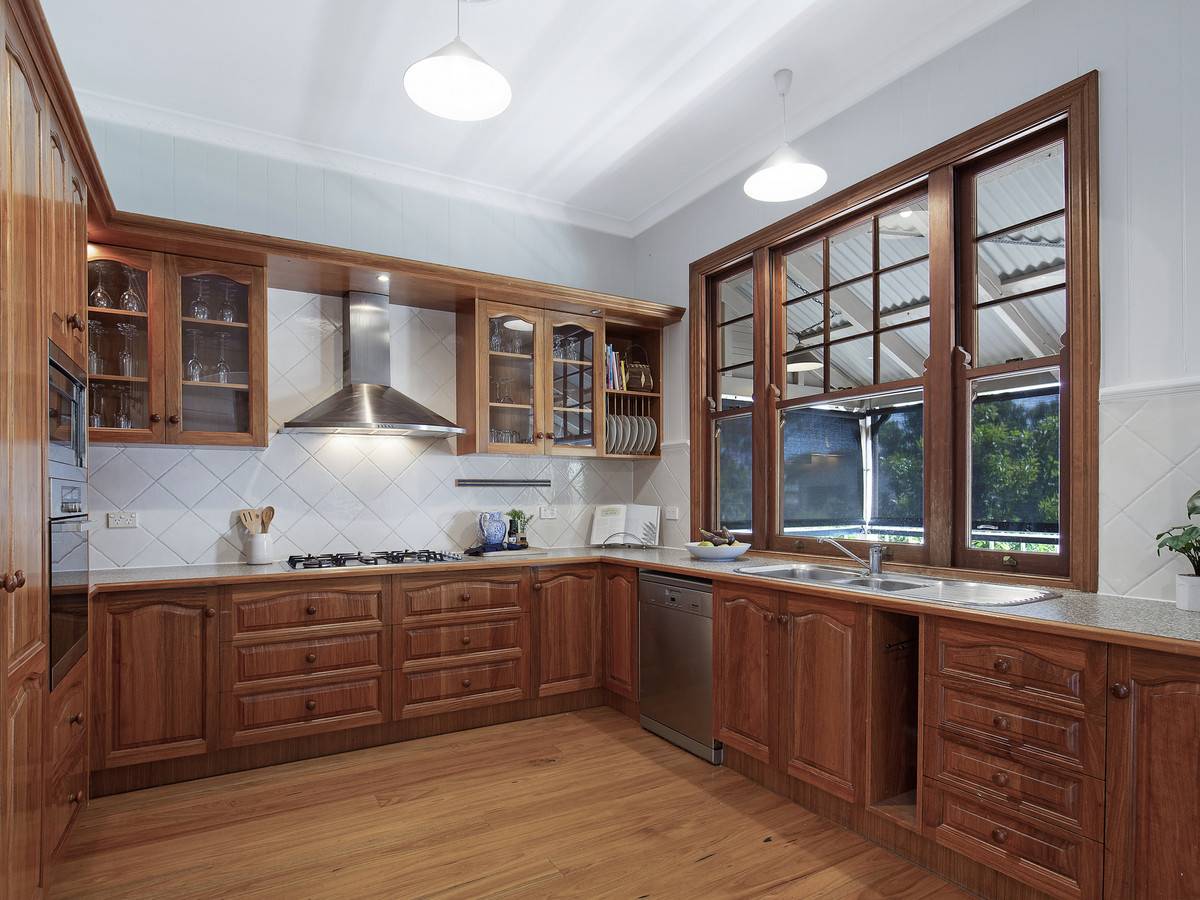• Timeless classic kitchen featuring timber cabinetry, ample bench, cupboard and