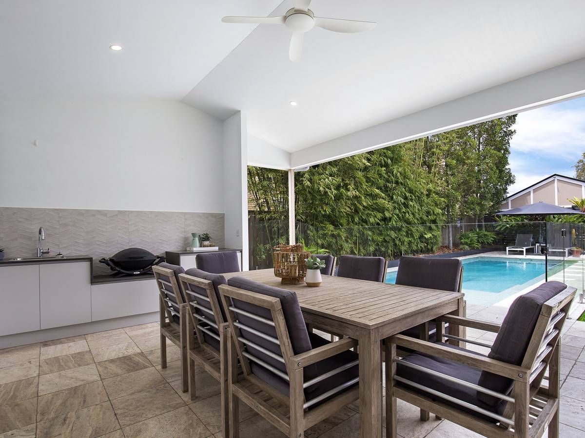 • Covered outdoor entertaining area with built in BBQ overlooks the family size