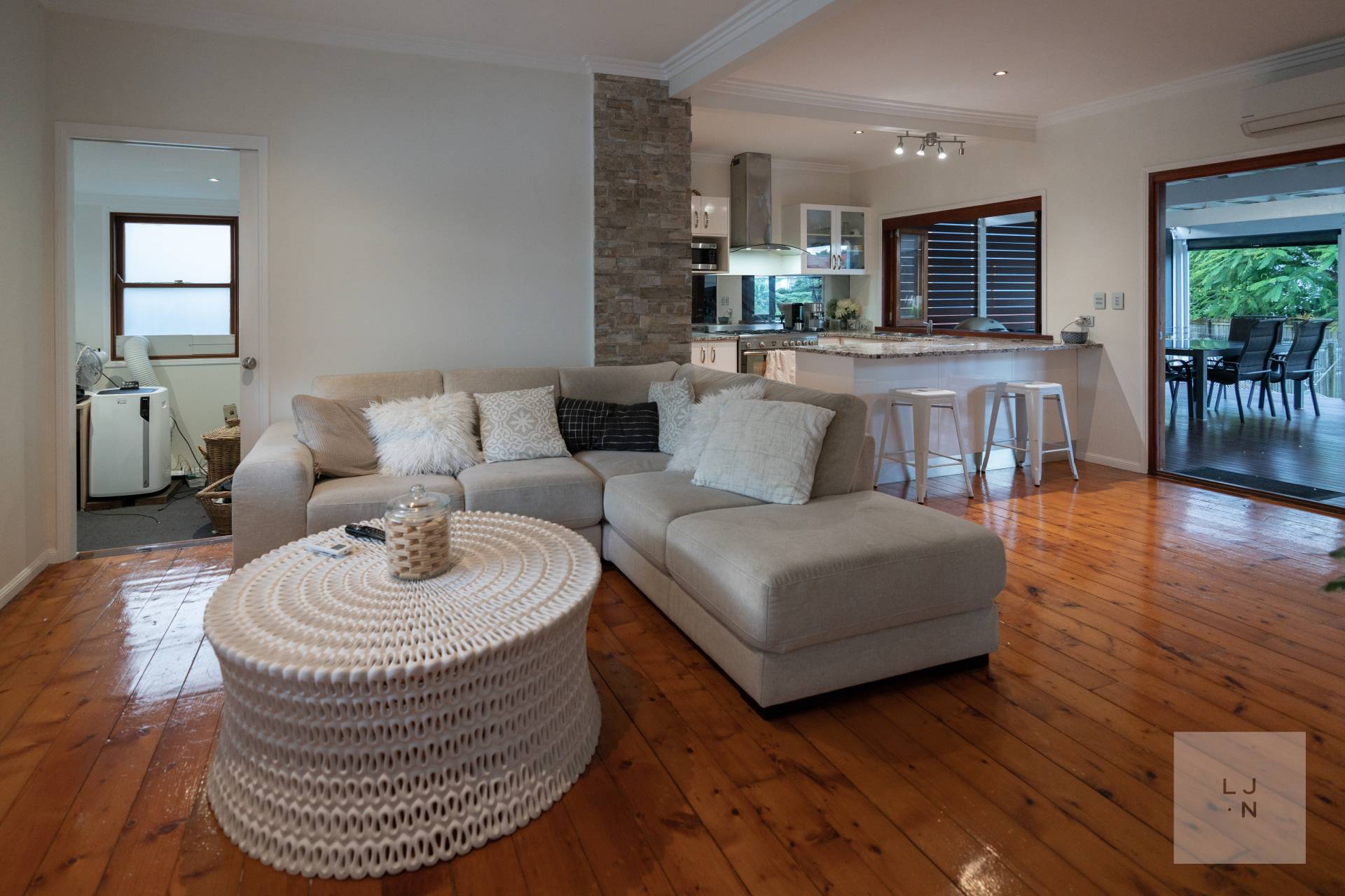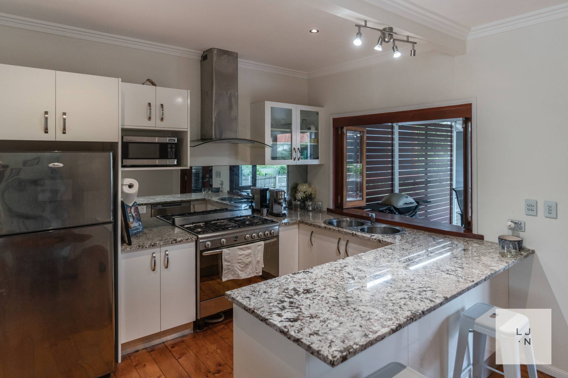 • Modern, stylish kitchen with Omega 900mm Gas Cook Top, Fisher Paykel Double Dishdrawer, ample cupboard and bench space plus a servery to the deck!