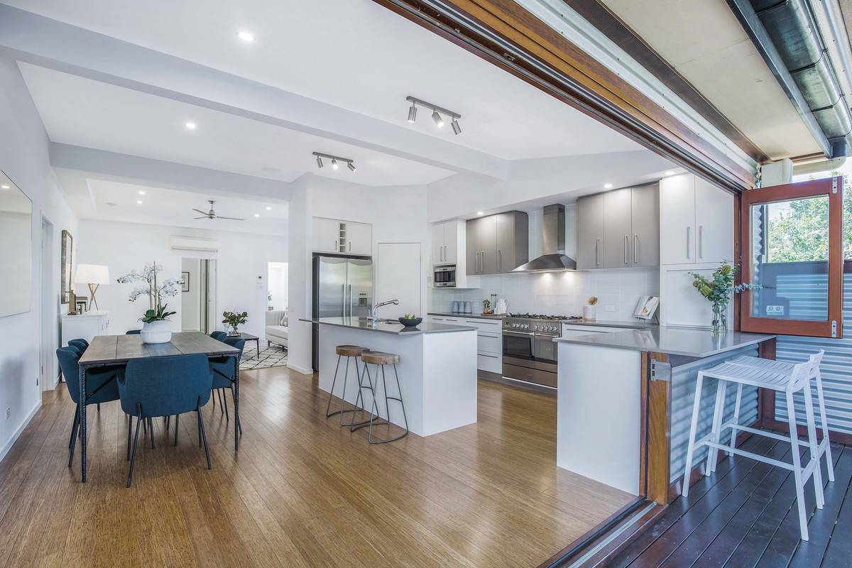 floating floor. The dining space connects to the rear deck via bifold doors offering you