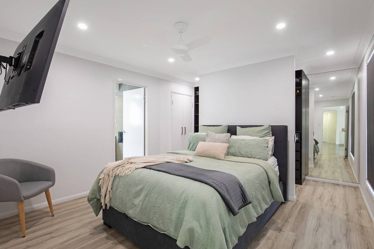 vinyl floor planking in the bedrooms, downlights, ceiling fans, hallway linen storage, 18