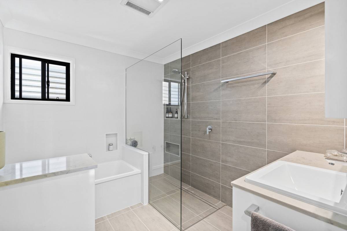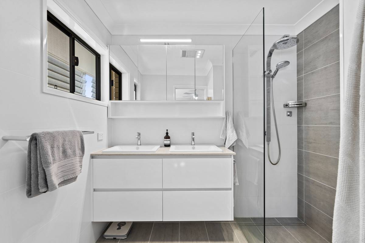• 3 carpeted bedrooms all with built-in wardrobes and cooling ceiling fans. The main bedroom features a spacious, fitted walk in wardrobe and a beautiful NEW ensuite. The ensuite boasts floor to ceiling tiles, a double vanity with storage and a frameless glass walk in shower.