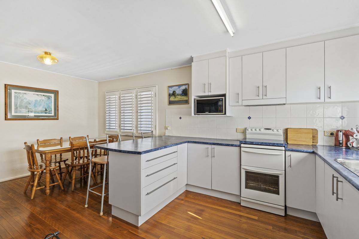 • Updated kitchen with upright electric stove and oven, easy care laminate benchtops, double door pantry plus ample cupboard, drawer and bench space. A practical breakfast bench provides an additional eating area.