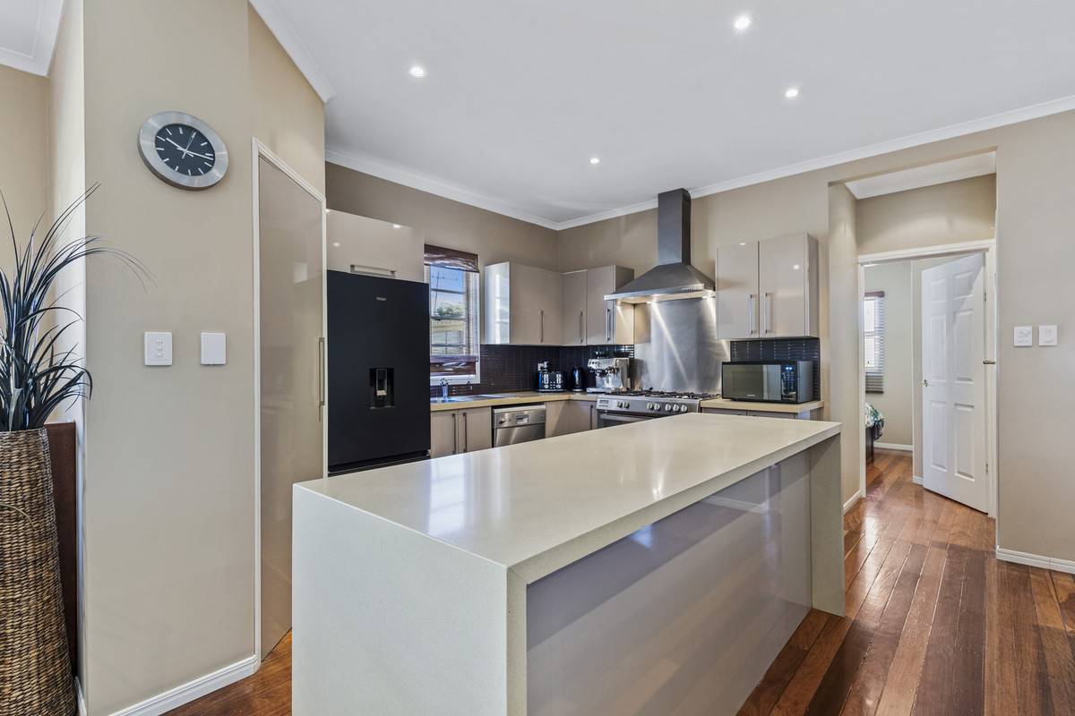 • Well-appointed modern kitchen featuring 2 pac cabinetry finishes, composite stone benchtops, 900mm 5 burner gas cooktop, dishwasher, island bench with wide drawers under, spacious corner pantry and plenty of cupboards, drawers and bench space.