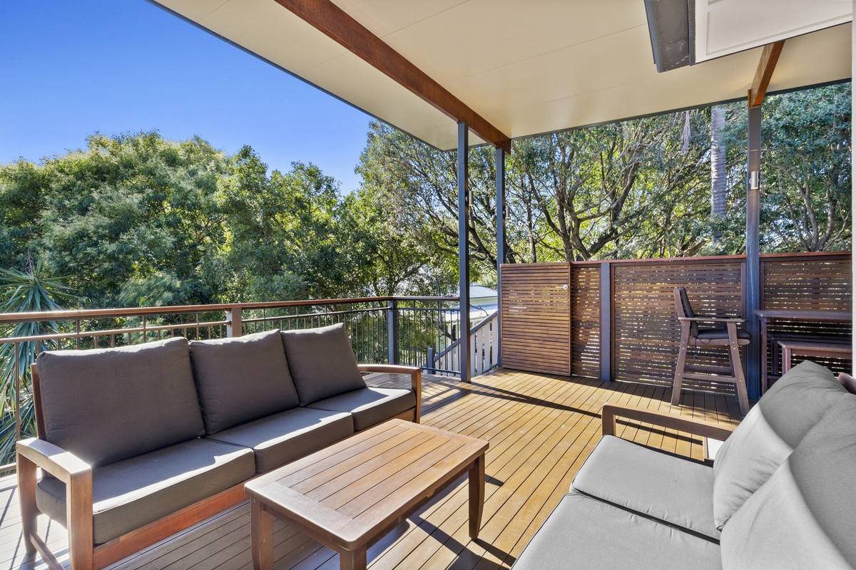 • The upstairs open plan living and dining area opens to the north facing covered rear deck. The deck enjoys a leafy outlook and captures both the warm winter morning sun and cool summer breezes.